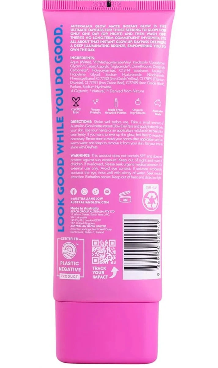 Glow Matte Instant Glow is the ultimate daypass for those who want to radiate brilliance for just one day or night — no strings attached. Experience a rich, illuminating bronze that boosts your confidence and lets you own every moment. Fast, fuss-free, and fabulously flawless — because glowing should always be this easy.