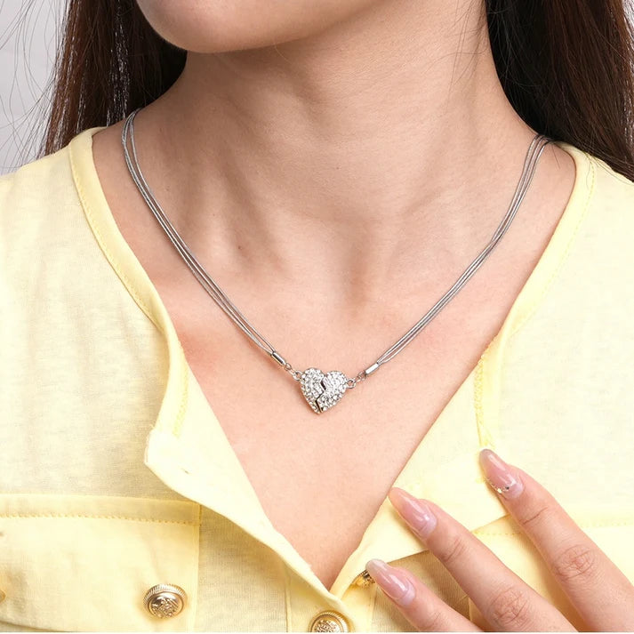 The Lovebox is the perfect gift for saying I Love You. Open the Lovebox and find the Rhinestone Studded Heart Shaped Magnetic Pendant with Stainless Steel Chain. Your partner will love the way the Heart Necklace clasps together.