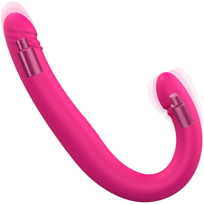 Experience the ultimate in double penetration pleasure with the Orgasmic Double Duo Silicone Vibrating Double Dildo! Designed for those craving deep, blended orgasms, this ultra-flexible dong features dual motors delivering 9 vibration modes and 9 kinetic shimmy motions for knee-weakening sensations. Its dual textured heads are crafted to heighten stimulation, while the premium silicone ensures a smooth, body-safe experience. Waterproof & rechargeable, this pleasure powerhouse is ready for endless exploration. Note: This is not a traditional thruster; its motion is a tantalizing kinetic shimmy.