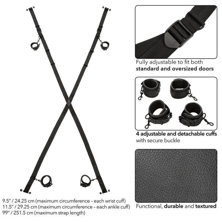 Designed for effortless setup and thrilling play, this over-the-door restraint system turns any standard or oversized door into a fully functional bondage station. Simply hang, secure, and surrender to new heights of pleasure.