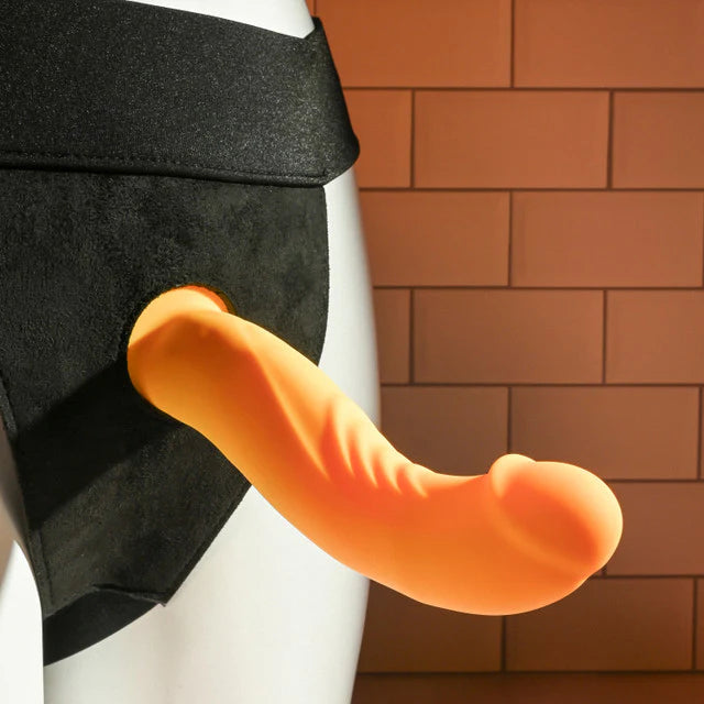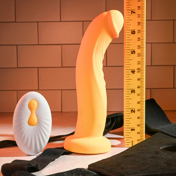 Designed for intense, wearable fun, this curved, wavy-shaft vibe brings two powerful motors to the party-one in the tip and one in the base, each controlled separately for customized sensations. The suede & pleather harness adjusts for a secure, sexy fit, while the remote control lets you or your partner take full command of the experience!