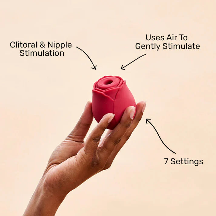 The Rose is a hybrid sex toy crafted for clitoral and nipple stimulation. Inspired by one of nature's most erotic plants, this rose Vibrator is sure to captivate us for years to come. The Rose has gone viral on social media and has become a household name. This discreet, waterproof sex toy uses air to gently stimulate the clitoris or nipples, while the silicone petals send sensation rippling outwards. Explore up to seven variations of power with this vibrating rose's intuitive, single button interface.