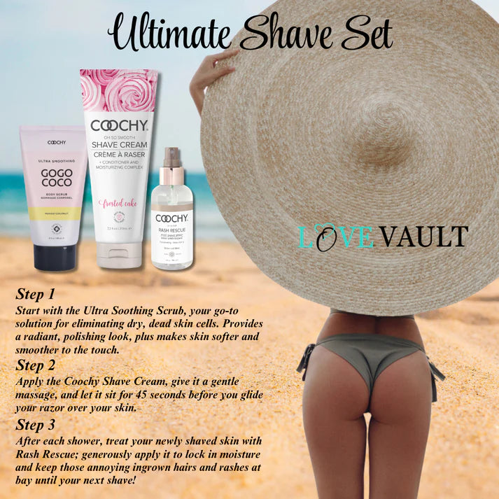 Step 2: Apply Coochy Rash Free Shave Cream and rub in and let sit for 45 seconds then shave